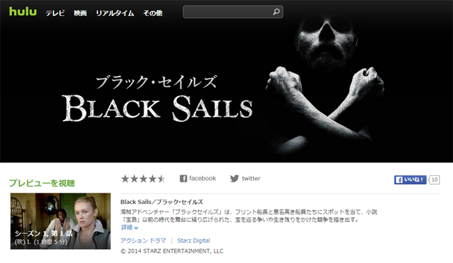 ブラックセイルズがHuluで動画配信開始されました!話題作を見逃すな!